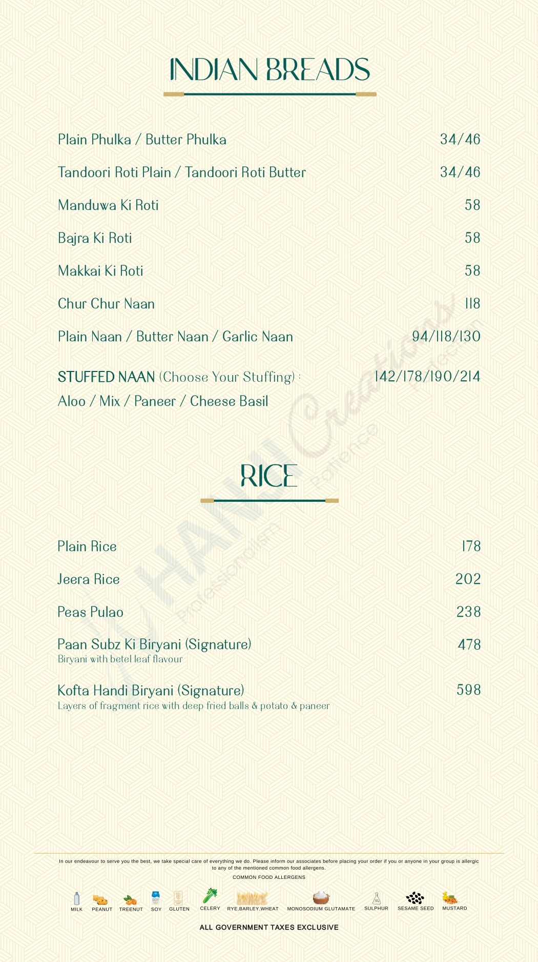 Our Food Menu